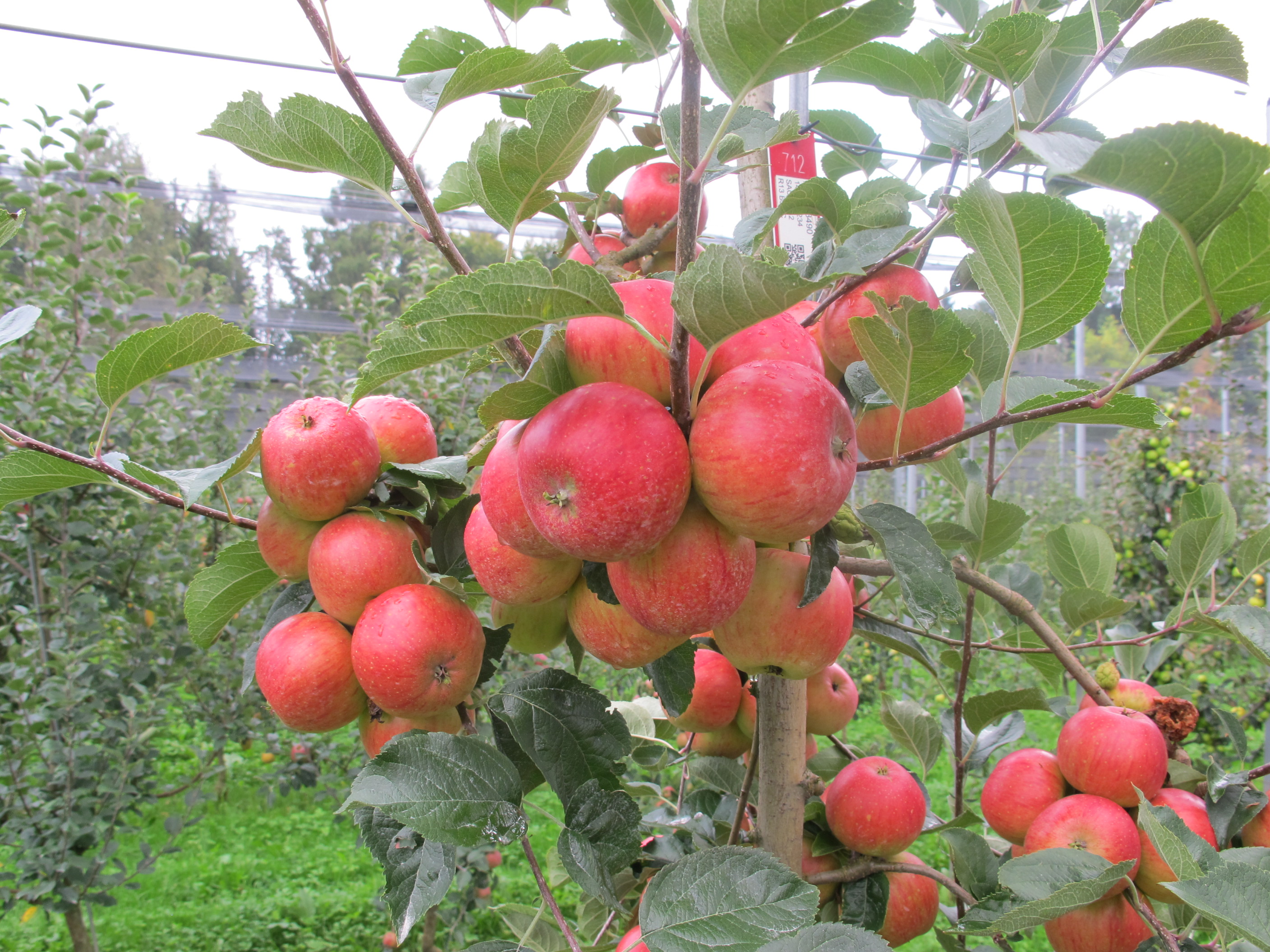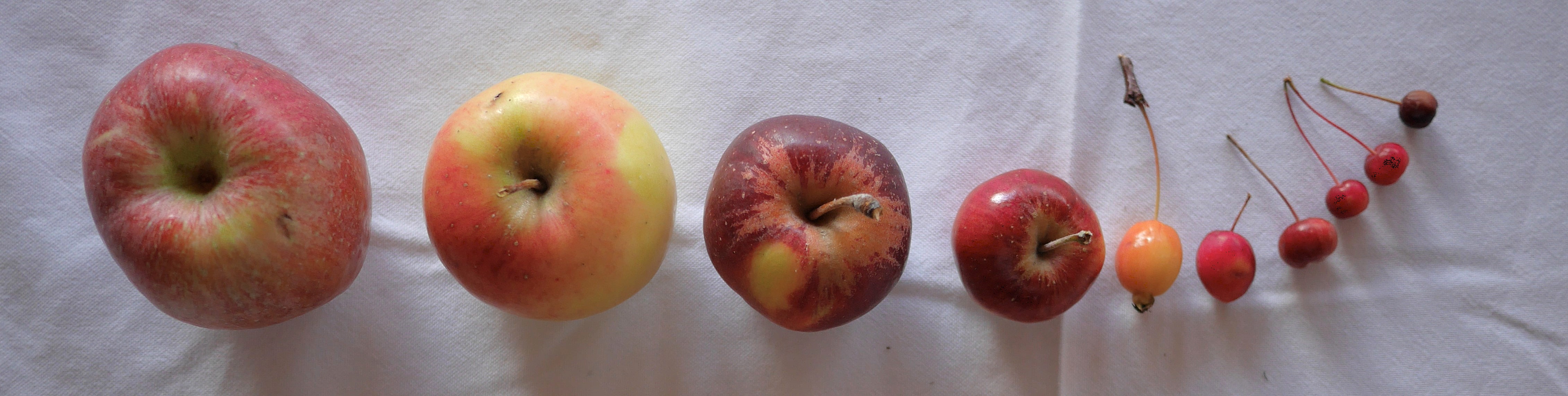 Von der Wildform (rechts) zu einer Vielfalt kultivierter Apfelsorten