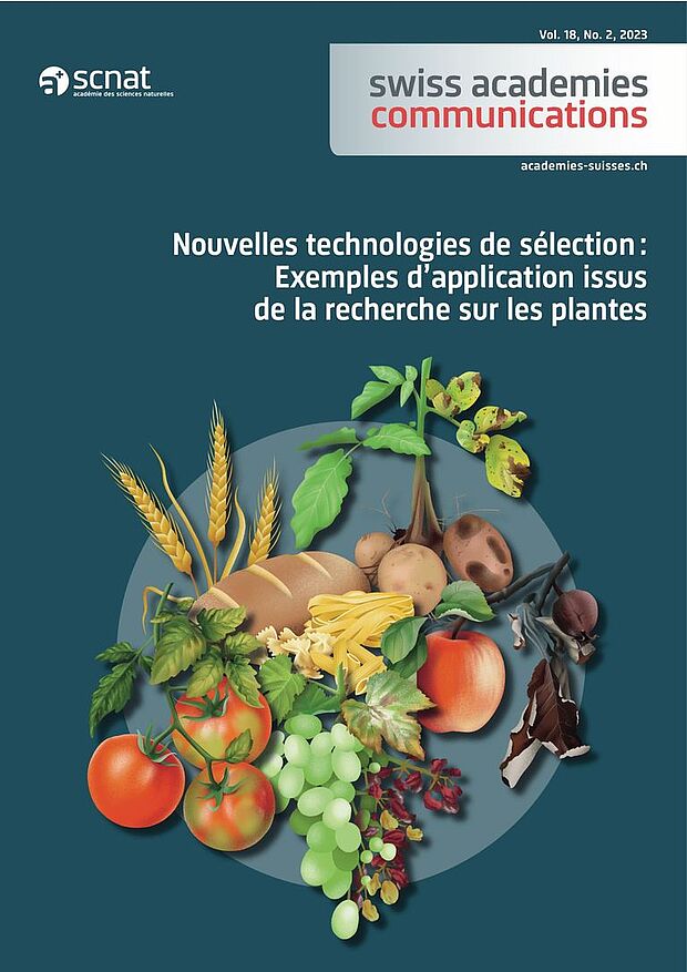Pour contribuer à la discussion, le Forum Recherche génétique de la SCNAT présente dans une nouvelle publication – Nouvelles technologies de sélection : Exemples d’application issus de la recherche sur les plantes –, cinq exemples d’application issus de la recherche sur les plantes et qui pourraient être intéressants pour la Suisse: des vignes plus résistantes au mildiou, des pommes plus résistantes au feu bactérien, des tomates plus résistantes au virus du fruit rugueux brun, des pommes de terre plus résistantes au mildiou et un blé contenant moins de gluten. Toutes les plantes utiles présentées ont été cultivées à l’aide de la méthode dite d’édition génomique et sont encore au stade de la recherche et du développement.