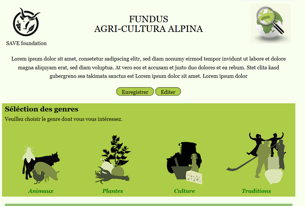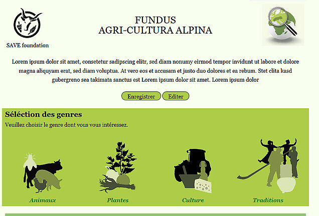 Mode d’emploi : pour participer, vous devez vous inscrire sur le site www.fundus-agricultura.wiki dans une des catégories (Animaux, Plantes, Cultures, Traditions) ou dans plusieurs. Vous recevrez ensuite un mot de passe. Le bureau du projet SAVE de St-Gall répond à vos questions : office(at)save-foundation.net, +41 71 222 74 10