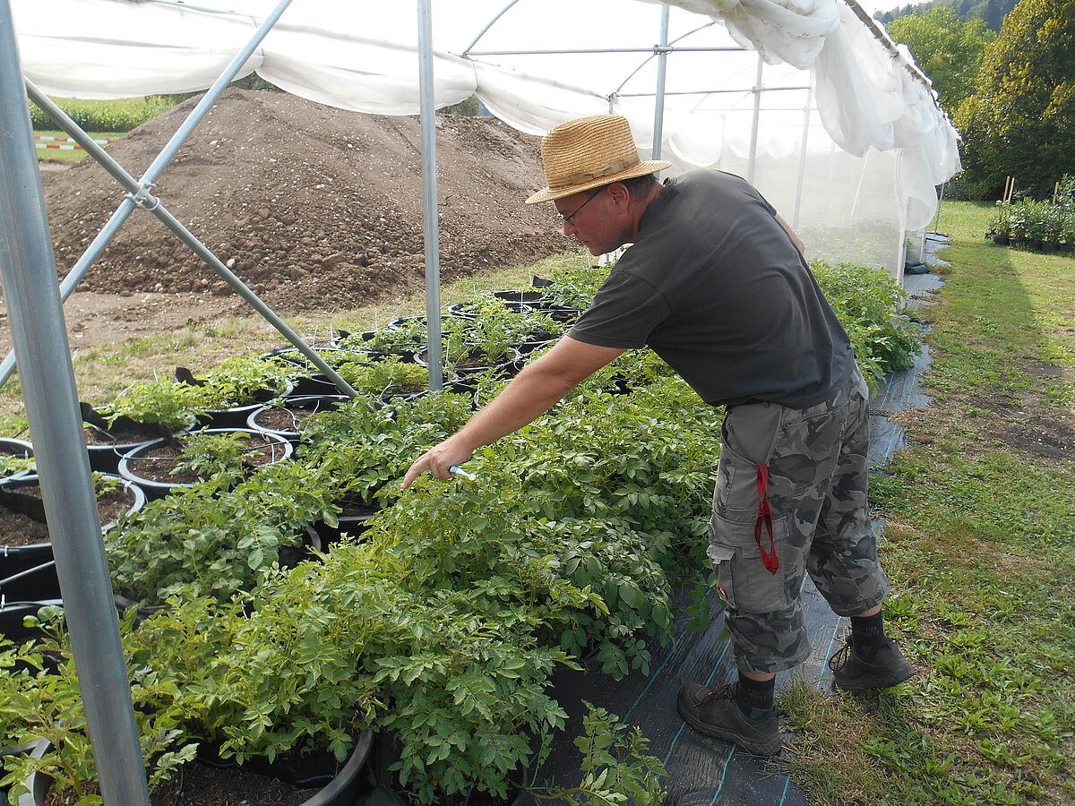In Weiach, einem kleinen Dorf im Kanton Zürich an der Grenze zwischen dem Aargau und Deutschland, hat Stefan Griesser das Unternehmen Varietas gegründet. Varietas ist eine Art kleines Labor, in dem es vor innovativen Ideen auf dem Feld und in Gewächshäusern nur so sprudelt. Sein Hauptziel ist es, ertragreiche und krankheitsresistente Tomaten- und Kartoffelsorten zu züchten. Die resistenten Gene, hauptsächlich gegen Phytophthora, werden aus einem Wildkartoffel-Genpool ausgewählt, diese werden mit mehreren hundert alten Sorten gekreuzt, darunter auch spezielle Sorten von ProSpecieRara.