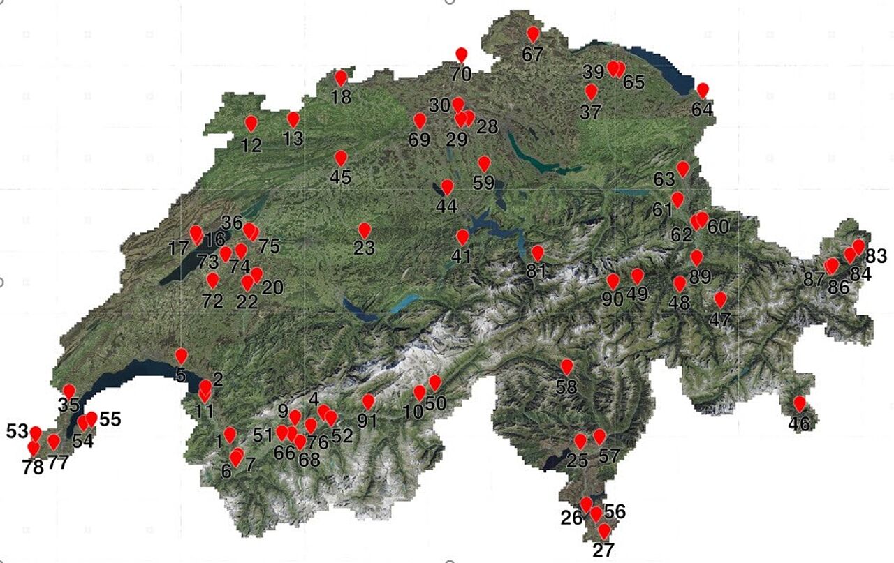 Dazu wurden 70 Akzessionen an 70 unabhängigen Standorten in 19 Schweizer Kantonen gesammelt und im Mai 2022 in der auf dem Gelände von Agroscope in Conthey errichteten Hopfenplantage angepflanzt. 15 kommerzielle Sorten wurden einbezogen, um Datenvergleiche anstellen zu können.