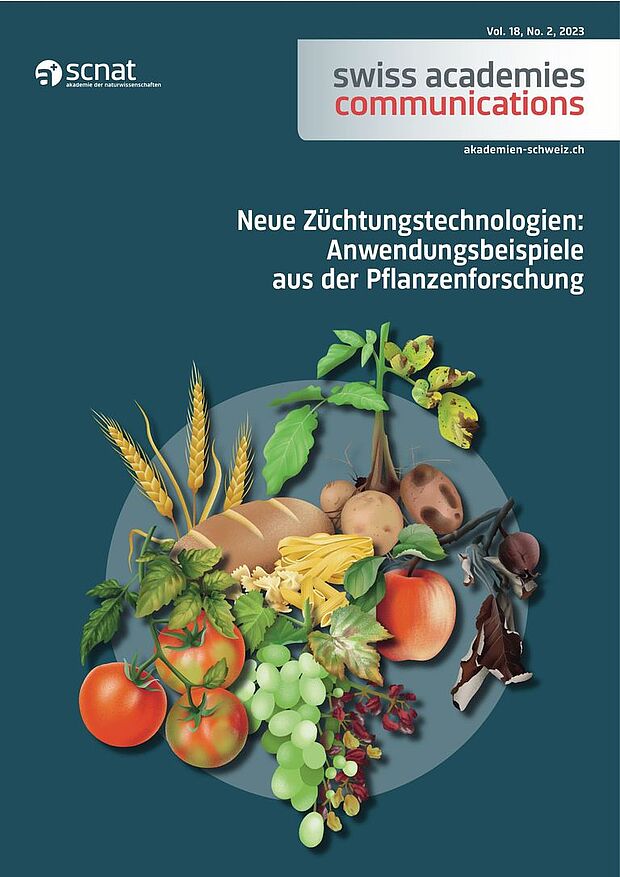 Als Beitrag zur Diskussion stellt das Forum Genforschung der SCNAT in einer neuen Publikation fünf Anwendungsbeispiele aus der Pflanzenforschung vor, die für die Schweiz interessant sein könnten: gegen Mehltau resistentere Weinreben, gegen Feuerbrand resistentere Äpfel, gegen das Jordanvirus resistentere Tomaten, gegen die Kraut- und Knollenfäule resistentere Kartoffeln und Weizen mit weniger Gluten. Alle vorgestellten Nutzpflanzen wurden mit der sogenannten Genom-Editierung gezüchtet und befinden sich noch im Forschungs- und Entwicklungsstadium.