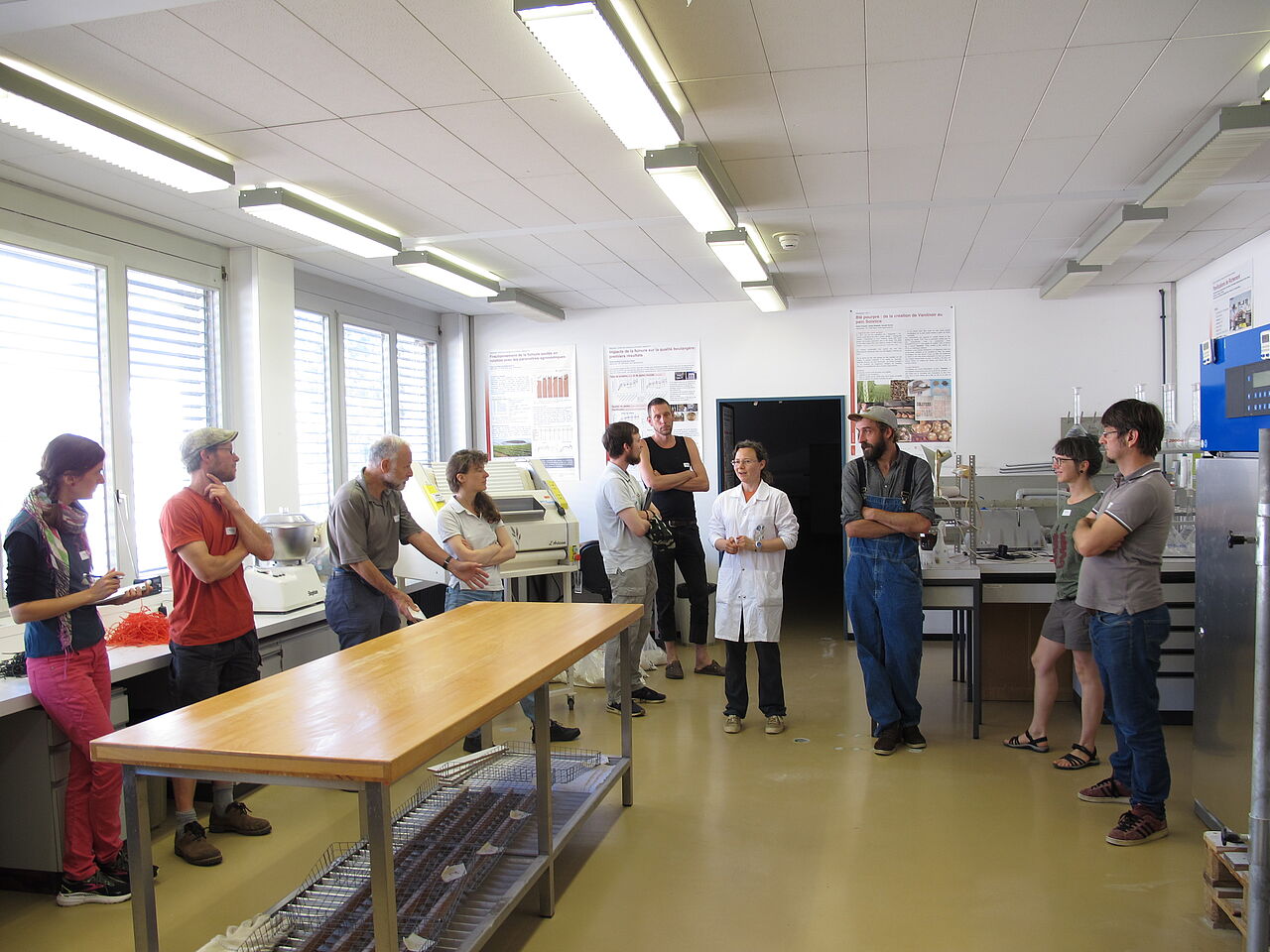 Zunächst stellte Züchterin Stephanie Bräunlich das Sommerweizenzuchtprogramm von Agroscope vor. Jährlich werden hundert Kreuzungen vorgenommen, aus denen nach 12-15 Jahren 1-3 neue Sorten hervorgehen. Um Zeit zu sparen, werden sie in der Gegensaison in Chile vermehrt. Die Selektion der besten Linien findet in der Schweiz statt. Dazu werden diese zunächst mit Krankheitserregern infiziert, später finden Qualitätsanalysen statt, wie z.B. die Messung der Backqualität.