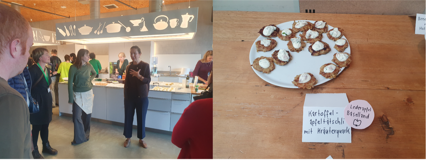 Der Höhepunkt des Treffens war die vergleichende Degustation unter der Leitung des Küchenchefs Pascal Haag. Die Teilnehmenden - Produzent:innen, Köch:innen und Akteur:innen des Netzwerks der Kulturpflanzenvielfalt - verkosteten die identisch zubereiteten Sorten und diskutierten deren kulinarische Eigenschaften: Textur, Süsse, Struktur und Garfestigkeit. Diese Austausche zeigten, dass sich gewisse Sorten besser als andere für spezifische Verwendungszwecke eignen.