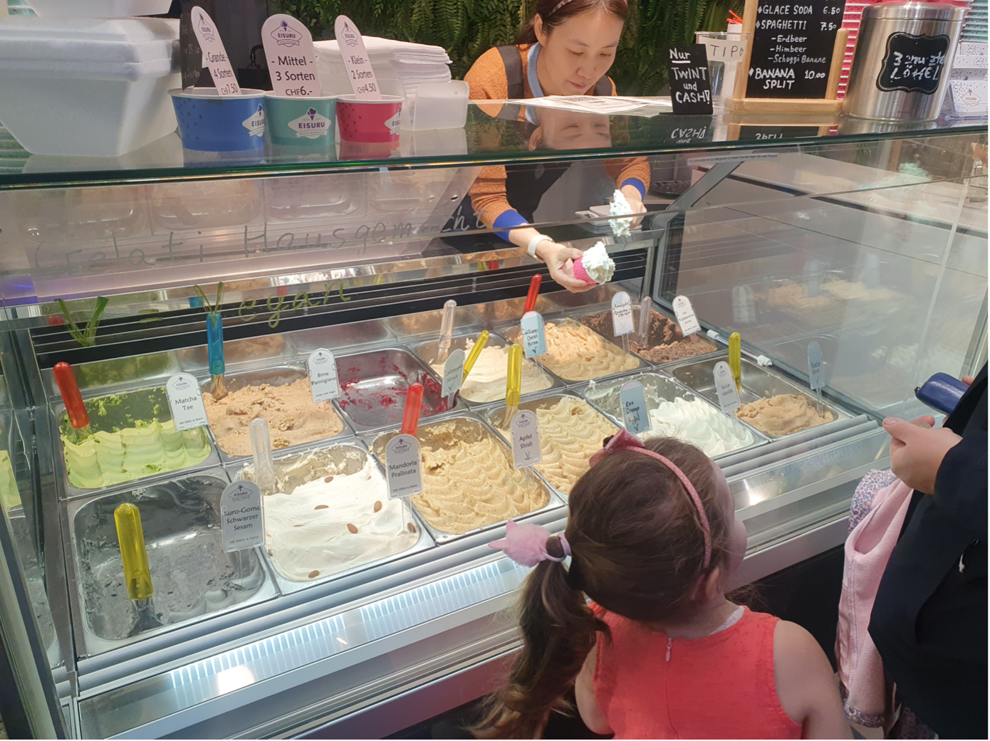 Zusätzlich stellten in der Markthalle etablierte Firmen wie das Café Finkmüller oder die Glacéverkäuferin Eisuru Spezialitäten mit einheimischen alten Sorten her, deren Früchte FRUCTUS ihnen geliefert hatte.