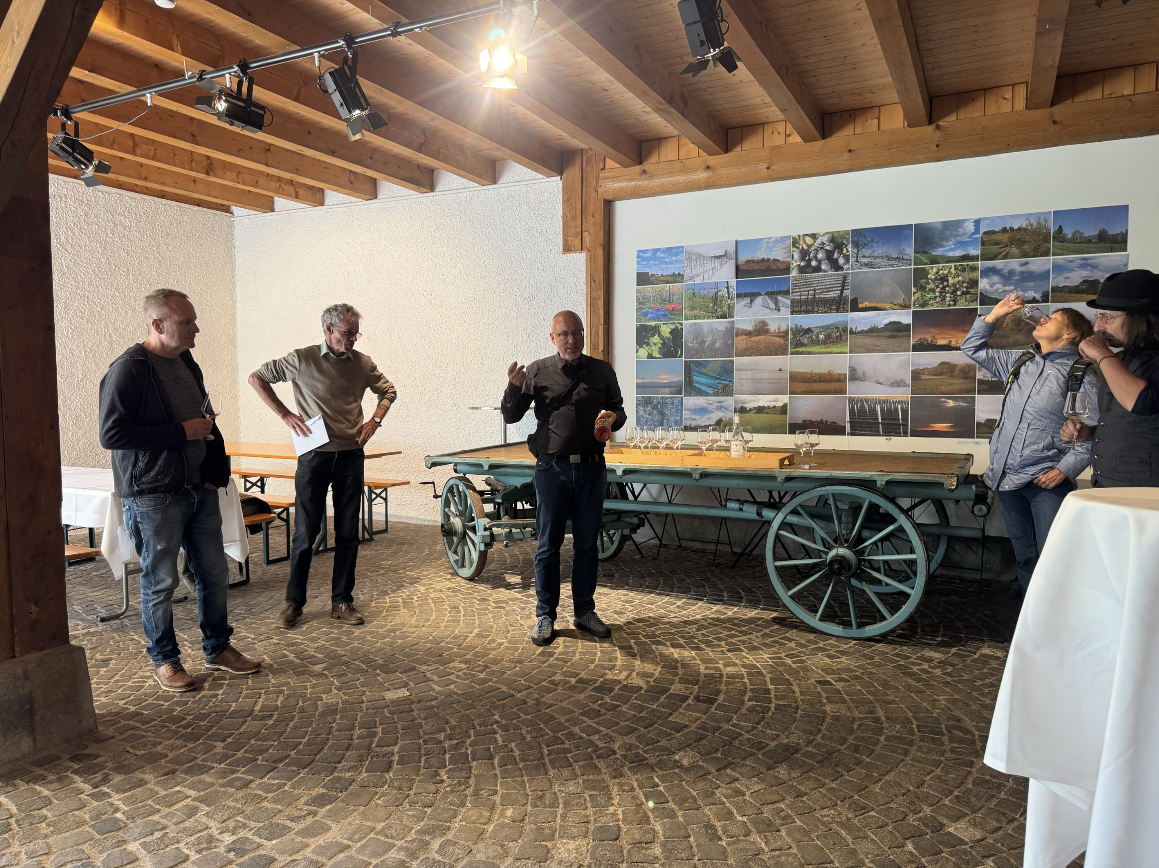 Nach dem Empfang stellte Jürg Boos die Swiss Apple Core Collection vor – ein Projekt im Rahmen des NAP-PGREL, koordiniert durch das Bundesamt für Landwirtschaft (BLW). Die Sammlung umfasst rund 450 Apfelsorten, von denen 75 der 79 im Standardwerk «Apfelsorten der Schweiz» von Hans Kessler beschriebenen Sorten sowie über 350 weitere Sorten vertreten sind. Jede Sorte ist mit 12 Bäumen auf drei Standorte (Rheintal, Wallis und Wädenswil) verteilt, um den Einfluss unterschiedlicher Umweltbedingungen zu vergleichen.