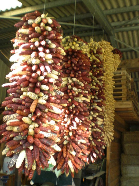 Der Anbau von Mais und seine Trocknung nach traditioneller Methode gehört ebenfalls zu den Tätigkeiten des Bauernhofs. Olivier Mayor benutzt im Wesentlichen eine alte Sorte, die er ursprünglich vom Musée de Bresse in Frankreich erhalten hatte. Zunächst vermehrte er diese Sorte selbst, worauf die Genbank von Agroscope ihr Interesse an einer Konservierung der Sorte bekundete, die seitdem Teil der Genbank ist. Olivier baut seinen Mais für den Eigenbedarf an: Fütterung der Tiere (Hühner und Kühe) sowie Nahrungsmittel für Menschen.