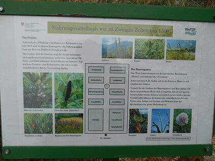 Dieses Jahr wird im April ein grosses Fest in Wildhaus im Toggenburg veranstaltet, wo der Reformator Zwingli seine Kindheit verbrachte. Eine Vielzahl von Besuchern werden zu dieser Gelegenheit erwartet – eine schöne Gelegenheit um die Öffentlichkeit für die Vielfalt von Kulturpflanzen zu sensibilisieren. RhyTOP hatte die Idee, einen Sortengarten mit Pflanzen anzulegen, die um das Jahr 1500 angebaut wurden, zu Zeiten des Reformators, und die als Nahrungsmittelgrundlage in dieser Region dienten. Der Garten liegt direkt neben dem Geburtshaus von Zwingli. RhyTOP ist verantwortlich für dieses Projekt, das es gemeinsam mit dem Team des Projekts Zwingli Wildhaus durchführt. Unterstützt wird es vom BLW und dem Lotteriefond St. Gallen.