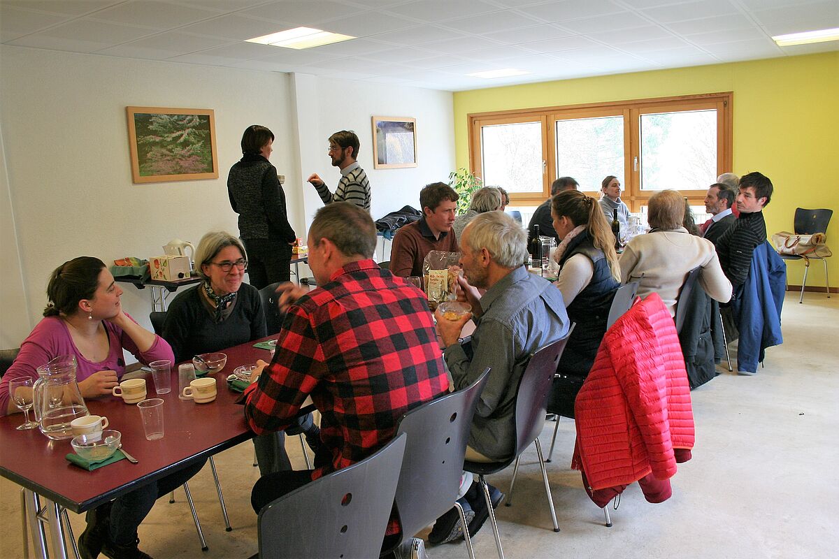 Am Morgen wurde in Vorträgen die Bandbreite der Erhaltungsarbeit von ProSpecieRara vorgestellt – ein grosses Erhalternetzwerk engagiert sich beim Anbau und der Vermehrung von Gemüsesaatgut, bei der Pflege und Erhaltung von Obst- und Beerensammlungen, bei der Vermehrung von Zierpflanzensaatgut und nicht zuletzt auch bei der Zucht von Schweizer Tierrassen. Am Nachmittag durften wir die ProSpecieRara Samenbibliothek entdecken, darin wird das ganze Gemüse- und Zierpflanzensaatgut in kontrollierten klimatischen Bedingungen aufbewahrt und gehütet.
