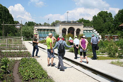 Ausserdem wurde der ProSpecieRara Schaugarten gezeigt, der sich in den Meriangärten befindet, zu sehen waren eine Obstsammlung, eine Beerensammlung, ein Bauern-Gemüsegarten und Stallungen mit Schweizer Hühnern, Kaninchen und Schafen - natürlich alles seltene Sorten und Rassen.