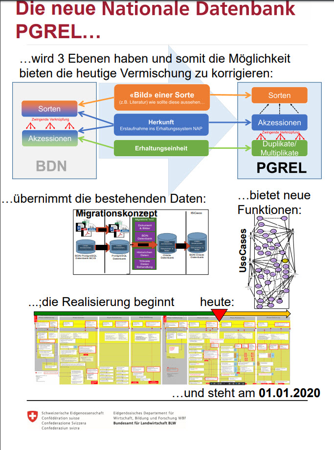 Dabei wird es neu drei Ebenen geben: die Sortenebene, die Akzessionsebene und die Duplikatebene. Sobald die neue Webseite in Betrieb ist wird eine Schulung vom BLW für alle Nutzer angeboten.